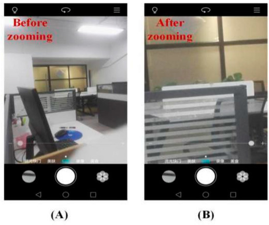 Two mobile photos taken in normal environment. The zoom function of the cell phone camera can be operated manually in the interface. (A) Photo before zooming. (B) Photo after zooming.