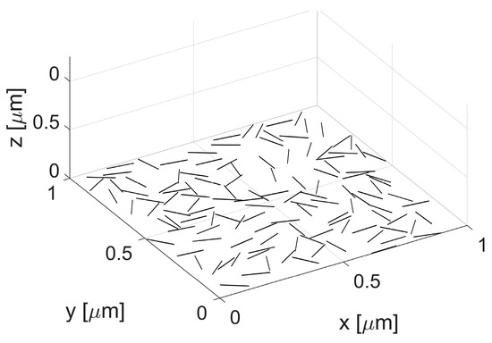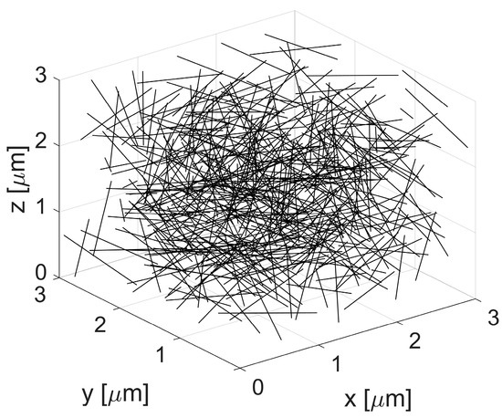 CNT networks developing in a layer of non-negligible thickness, in which more than two nanotubes can overlap, are poorly described by 2D networks, because the current flow can be directed out of plane due to the proximity of CNTs in the vertical direction. This matter can be easily understood by observing Figure 4, showing an example of a CNT network dispersed in a volume.