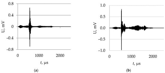 Analytical expressions of the coefficients are given in [22], their values depend on frequency f and thickness of the testing structure h. The analytical method based on the modal analysis, supplemented by analytical consideration of the attenuation coefficient and the impulse response of AE sensor, allows simulating AE signals of a realistic form [23]. Figure 6 represents the calculated signal (Figure 6a) and experimental signal obtained using the Hsu-Nielsen simulator (Figure 6b) for wall thickness 20 mm at 4 m from the AE sensor.