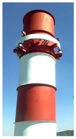 - Longarini, N.; Zucca, M. A chimney’s seismic assessment by a tuned mass damper. Eng. Struct. 2014, 79, 290–296. [Google Scholar] [CrossRef]