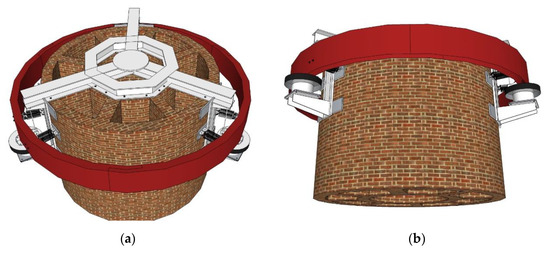 The use of steel reinforcements rings to improve the seismic behavior of slender masonry constructions (invasive modification of the original structure (solution 1). (a) Outer reinforcement, and (b) inner reinforcement.