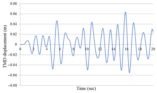 Changing the μ ratio in the range 1–5%, as suggested in [13], a preliminary definition of the TMD parameters is carried out for two different TMD mass positions: (i) at the top of the chimney (40 m height) and (ii) at the top quote of the part of the double skin (about 26.50 m). The optimal μ value (depending upon the values of kTMD and cTMD) significantly reduces the base shear, base moment, and top displacement of the chimney with an acceptable value of the TMD mass [41,42,43]. Table 3 shows the main TMD parameters considered in this work for the two different positions. It is important to notice that the two proposed TMD configurations are completely independent and designed to work around the first fundamental frequency that characterizes the chimney’s dynamic behavior.