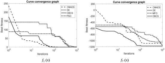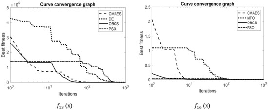 According to Table 1, the proposed SOA scheme obtain a better performance than ABC, CMAES, CSA, DE, MFO and PSO in functions , , , , , , , and . Nevertheless, the results of SOA exhibit similar as the obtained by DE, CMAES and MFO in functions , and .