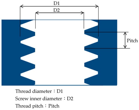 Additionally, the FANUC 31iMA controller used in this experiment is that the control method in which the tapping axis follows the spindle identifies synchronization errors between the spindle and the tapping axis. Figure 1 shows that synchronization error is an essential indicator in rigid tapping because it affects internal threads’ shape and precision.