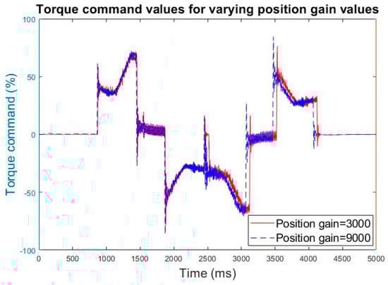 Torque command values for varying position gain values in rigid tapping.