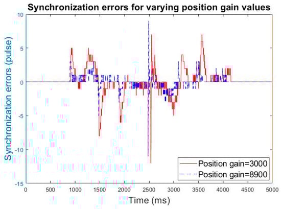Synchronization errors for varying position gain values in rigid tapping.