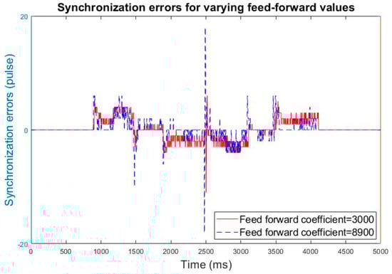 Synchronization errors for varying advanced feedforward coefficients.