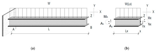 where, M is the bending moment and I is the inertia moment. Thus, from Equations (9) and (10), the cross-sectional area of the beam can be analyzed as