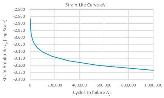 As a result, by using data obtained in step 7.2, the determined values of the strain amplitude are shown in Table 4. Here it is important to highlight that the value of the determined for is related to the determined time-dependent strain value that defines the equivalent stress in step 5.