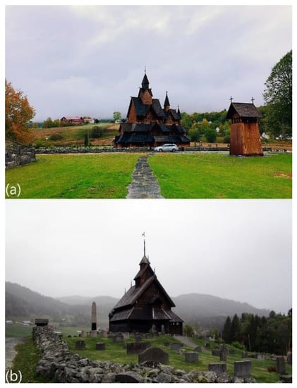 Case study of two stave churches in Vestfold and Telemark county: (a) Heddal and (b) Eidsborg.