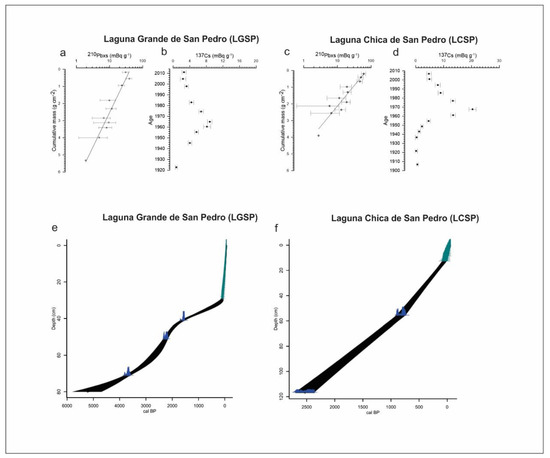 - Cruces, F.; Urrutia, R.; Araneda, A.; Torres, L.; Cisternas, M.; Vyverman, W. Evolución trófica de Laguna Grande de San Pedro (VIII Región, Chile) durante el último siglo, mediante el análisis de registros sedimentarios. Rev. Chil. Hist. Nat. 2001, 74, 407–418. [Google Scholar] [CrossRef]