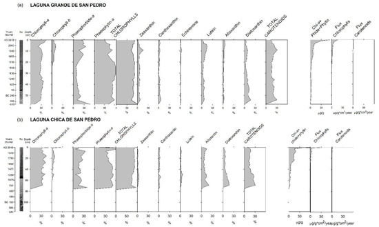 - Leavitt, P.R.; Hodgson, A. Sedimentary pigments. In Tracking Environmental Change Using Lake Sediments: Terrestrial, Algal and Siliceous Indicators; Smol, J.P., Birks, H.J.B., Last, W.M., Eds.; Kluwer Academic Publishers: New York, NY, USA, 2001; Volume 3, pp. 295–325. [Google Scholar] [CrossRef]