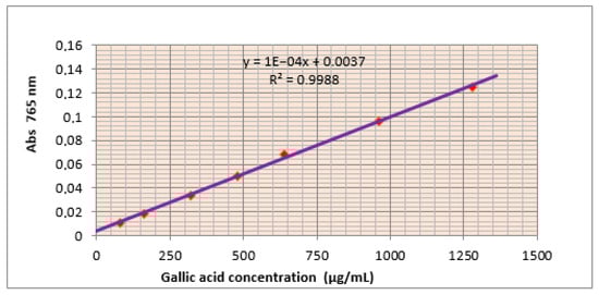 Gallic acid calibration curve used for total phenol quantification.