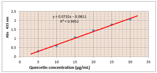 Quercetin calibration curve used for total quantification.