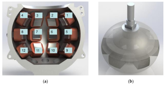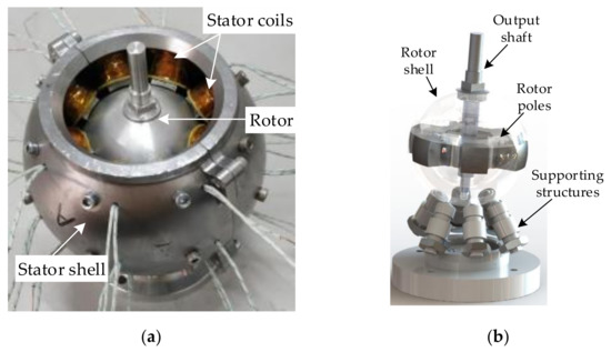 - Rossini, L.; Mingard, S.; Boletis, A.; Forzani, E.; Onillon, E.; Perriard, Y. Rotor Design Optimization for a Reaction Sphere Actuator. In Proceedings of the International Conference on Electrical Machines & Systems, Busan, Korea, 26–29 October 20l3; IEEE: Piscataway, NJ, USA, 2013. [Google Scholar]