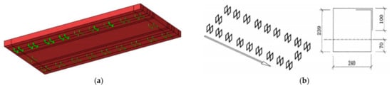 Schematic diagram of door-type reinforcements. (a) Schematic diagram of space location; (b) size of rebar (unit: mm).