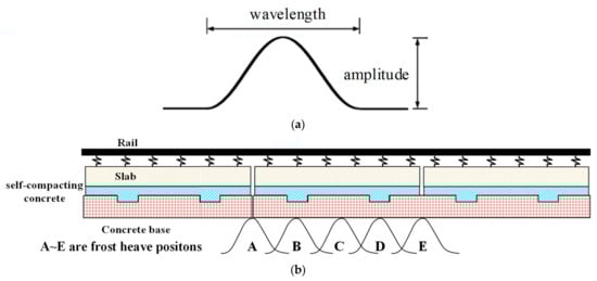- The frost heave displacements of subgrade affects the deformation of its superstructure, leading in turn to cosine track irregularities. Because of the great stiffness of slab track, the amplitude transfer ratio will be greater than 1.0; that is, the deformation mapped to the rail surface will increase.