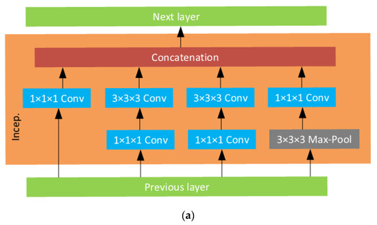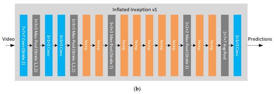 (a) Inception module; (b) Inflated Inception v1 architecture [35].
