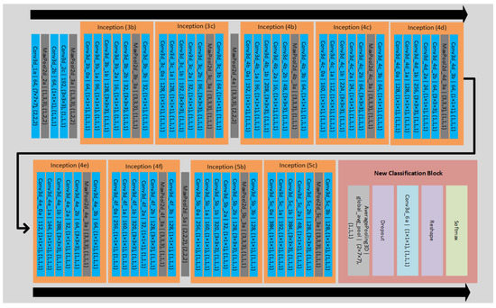 - Szegedy, C.; Liu, W.; Jia, Y.; Sermanet, P.; Reed, S.; Anguelov, D.; Erhan, D.; Vanhoucke, V.; Rabinovich, A. Going deeper with convolutions. In Proceedings of the Conference on Computer Vision and Pattern Recognition, Columbus, OH, USA, 23–28 June 2015. [Google Scholar]