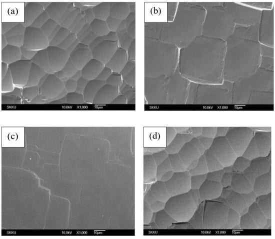 SEM images of the silicon surface: (a) saw damage etched wafer without H2S annealing treatment, (b) saw damaged etched wafer under 525 °C H2S annealing treatment, (c) saw damage etched wafer under 600 °C H2S annealing treatment, (d) saw damage etched wafer under 700 °C H2S annealing treatment.