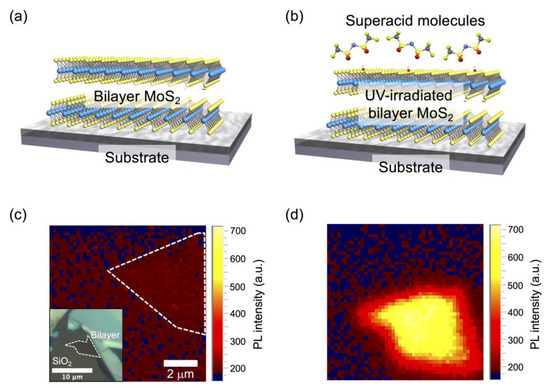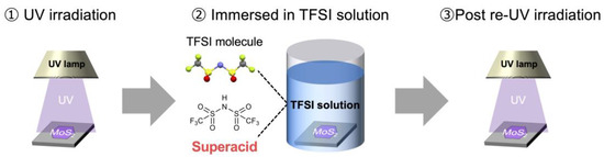 The following are available online at https://www.mdpi.com/article/10.3390/app11083530/s1, Figure S1: PL enhancement via the process of TFSI treatment followed by UV irradiation for the bilayer MoS2 and Figure S2: Raman spectra for the UV-irradiated bilayer MoS2.