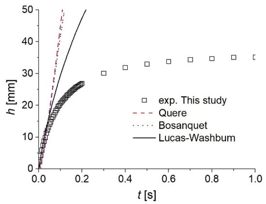- Hamraoui, A.; Nylander, T. Analytical approach for the Lucas-Washburn equation. J. Colloid Interface Sci. 2002, 250, 415–421. [Google Scholar] [CrossRef] [PubMed]