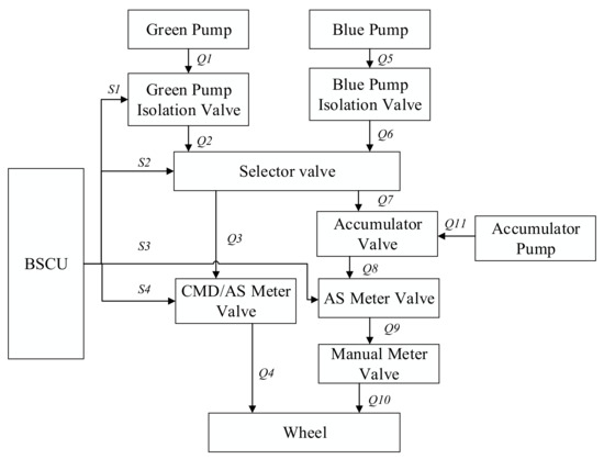 Structure Model of Brake System. (Q1–Q11: the flow of the components; S1–S4: the signal of the components.)