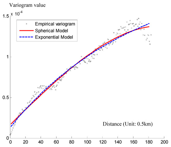 In order to further analyze and compare the fitting performance of the different variograms, the measured data are used for comparative analysis, and the results are shown in Figure 8.
