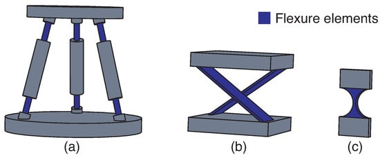 Applications increasingly demand compliant systems with large workspaces, multiple-DoFs, low cross-coupling errors, and reduced parasitic motions. Attempts to reduce inaccuracies and limitations have been proposed, some examples are the use of redundant constraints [14,15], compound joints [16,17], addition of subsystems [18,19], implementation of tracking control systems [20], and design of spatial complex architectures to perform basic planar motions [21]. However, all of these techniques are based on the incorporation of elements or sub-systems to the compliant system, thus increasing complexity, size, and weight.