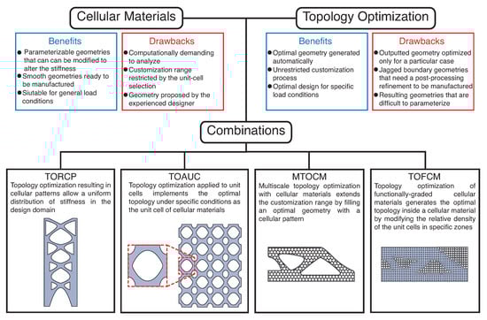 Summary diagram of the Cellular Materials and Topology Optimization approaches and their combinations.