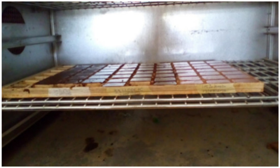 LDPE: aluminosilicate powder (MC or MK) ratio with LDPE volume fraction 5%, 10% and 15% was measured and dry mixed for 7 to 10 min for homogeneity before the addition of geopolymer activator. A total of 8 M sodium hydroxide (NaOH) was also prepared using a 98% pure Sodium pellet and distilled water. The geopolymer activator was then obtained by measuring 2.5 molar ratio of Na2SiO3/NaOH. The geopolymer activator was then added and further mixed mechanically for 20–25 min. The mixtures were poured in a mold with dimension shape of 50 mm × 50 mm × 10 mm. A vibrator was used to ensure proper molding and to reduce pores formed by air bubbles. The geopolymer ceramics were then cured at temperatures 30 °C and 50 °C in an oven for 24 h (Figure 2). The compressive strength and water absorption were measured. The geopolymer ceramics from MC was named MCGC and the geopolymer ceramics from MK was named MKGC.