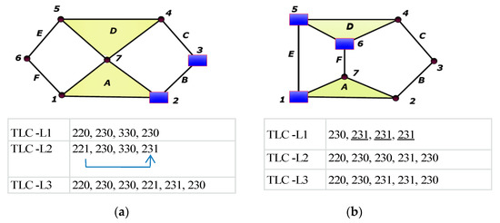 Deriving Initial topological loop code, ITLC. (a) Joint between binary and ternary links. (b) Joint between quaternary and ternary links.