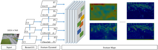 - Lin, T.Y.; Dollár, P.; Girshick, R.; He, K.; Hariharan, B.; Belongie, S. Feature pyramid networks for object detection. In Proceedings of the IEEE Conference on Computer Vision and Pattern Recognition, Honolulu, HI, USA, 21–26 July 2017; pp. 2117–2125. [Google Scholar]