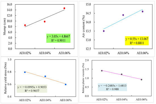 Effect of air-entraining agent on slump, air content, relative yield stress, and viscosity.