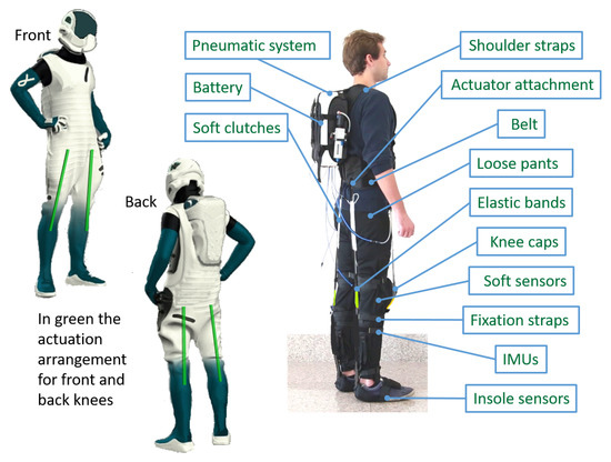 - Body Attachment: Body attachment is required to transmit the forces from the actuators to the wearer’s body. The body attachments consist of shoulder straps, fixation straps, belt, and actuation attachments.