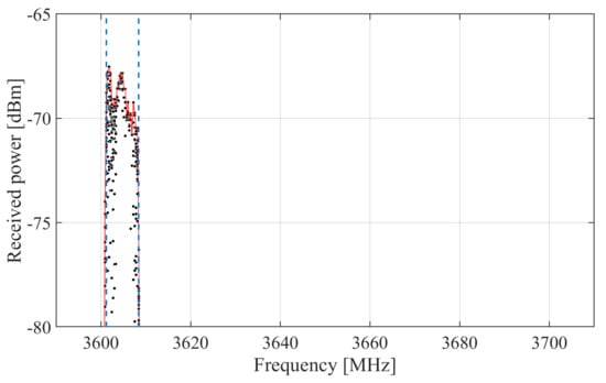 A closer look at the 100 MHz-wide signal around 3.6 GHz (Figure 2) revealed [13] the position of the SSB at the start of the channel bandwidth (Figure 3), namely at = 3604.8 MHz (with corresponding global synchronization channel number (GSCN) of 7919). Furthermore, its width of ∼7 MHz indicated an SCS of 30 kHz (Figure 3). This was checked and observed at each of the investigated sites.