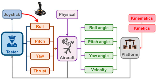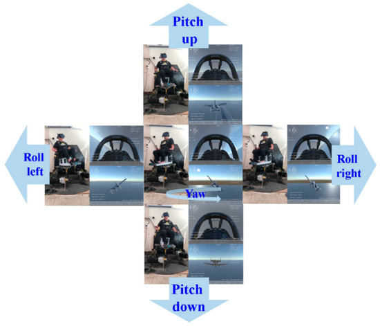 The overall system correlation diagram is shown in Figure 10. The tester controlled the roll, pitch, heave, and yaw motions of the aircraft through the joystick to drive the platform to make the corresponding action-angle. Then, the tester could experience a more realistic flight experience.