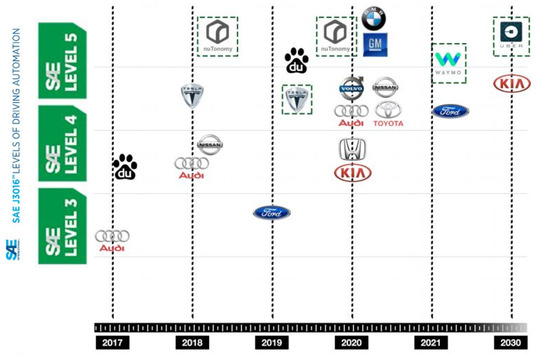 Autonomous vehicles represent a new business in which several automotive manufacturers and transport companies are already focusing. Figure 2 shows some of the brands that have already begun investing funds in AVs, and that are expected to strongly influence the market by 2030 [10].