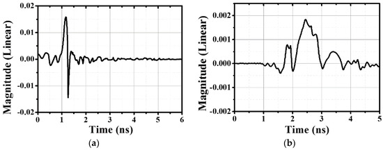 The difference of the backscattered time domain signal (a) reflected scattering signal, and (b) transmitted scattering signal.