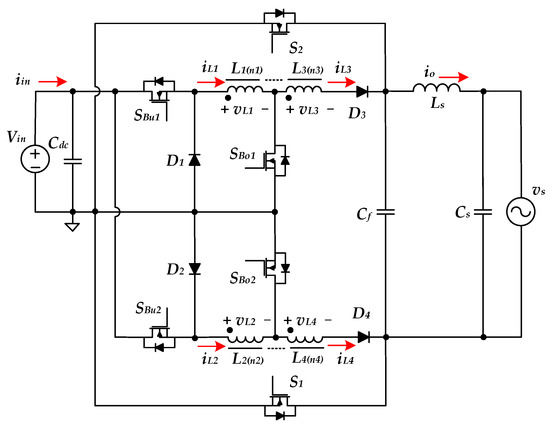 - Tang, Y.; Bai, Y.; Kan, J.; Xu, F. Improved dual boost inverter with half cycle modulation. IEEE Trans. Power Electron. 2017, 32, 7543–7552. [Google Scholar] [CrossRef]