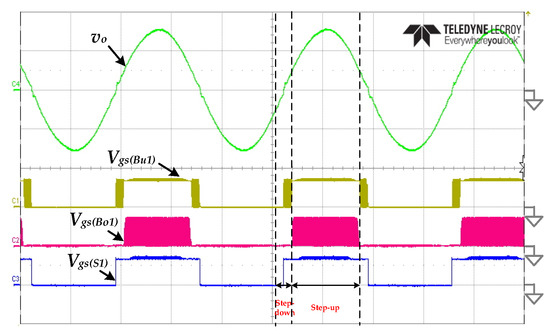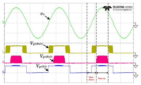 - Chang, C.H.; Ho, K.H. A transformer-less high-gain inverter with step-up/down and single energy-processing features. IEEE Emerg. Sel. Top. Power Electron 2020. accepted. [Google Scholar] [CrossRef]