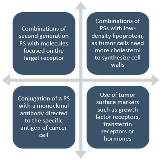 Modifications of PDT for increasing drug selectivity. Created based on information from literature reference [7].