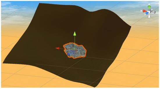 Initially, the digital terrain model has been imported from GIS data using SketchUp software with Oob Terrain add-on. The terrain was sized 2 km × 2 km. The texture of the terrain has been created with a series of photos taken from helium-filled balloon. The balloon (Figure 2) had rope-mounted fixed aluminum platforms equipped with a digital camera, Canon EOS 50D DSLR. On-site photos capturing required a flight plan of about 10–100 m [65].