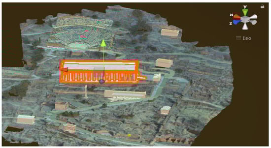 For the creation of the 3D model of Delphi’s archaeological site, more than 13,000 photos were taken, and the model produced by the laboratory of the University UCSD (University of California, San Diego, CA, USA) partner in Delphi4Delphi, had size ~4 GB. The 3D model was then simplified, and the final model was used in our Virtual Tour application (Figure 3).
