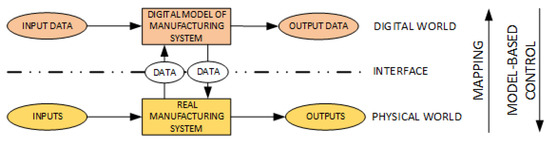 A digital model is a simplified representation of a real system and process, with the characteristics which reflect the properties and explain the behavior of the real manufacturing system. It represents a partial description of the real system, because it is made for a specific purpose and therefore cannot include all the details of the real system. Figure 1 shows the connections between a real manufacturing system and its digital model. To synchronize both, data exchange should be performed in both directions.