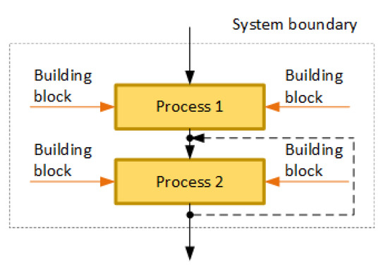 In order to develop a digital model and later a digital twin, a detailed definition of the manufacturing system with all processes and their sequences is required. This can be represented with the help of a functional diagram based on the distribution of the building blocks to the four described groups. The development of the functional diagram starts with the definition of the first process in the manufacturing system and follows with the sequence of other processes executed by the building blocks. It contains information about the building blocks that are involved in the process.
