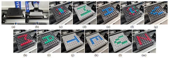 (a) Empty pallet; (b) Pallet with a base part; (c) Product 1; (d) Product 2; (e) Product 3; (f) Product 4; (g) Product 5; (h) Product 6; (i) Product 7; (j) Product 8; (k) Product 9; (l) Product 10; (m) Product 11.