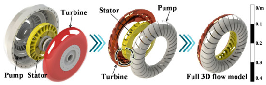 ANSYS CFX 19.2 was employed to resolve the Reynolds-averaged Navier–Stokes equation of the full three-dimensional flow field. The following assumptions were put forward to improve the convergence and accuracy of steady-state/transient numerical calculation [2]: (1) The flow was incompressible and the heat transfer was ignored in torque converter. (2) The components were assumed to be absolutely rigid bodies, and deformation and axial displacement were not considered. (3) The leakage was neglected.