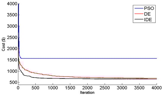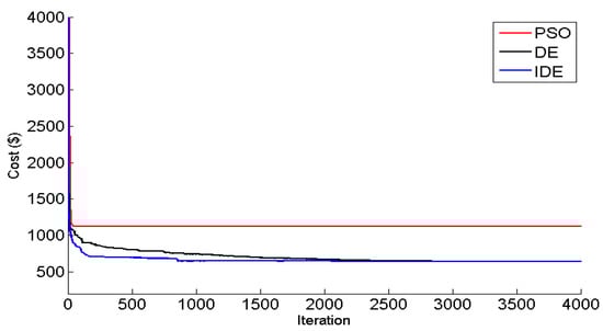 In general, real-world optimization issues involve various goals that should be optimized simultaneously, and this set of goals might have conflicting and different goals and incomparable applications [44,45]. In order to simultaneously address these issues towards optimal aims, multi-objective optimization techniques can be used effectively to obtain a set of optimal answers. In this section, the principles of our proposed IDE algorithm to optimize energy management in MG are presented; hence, we need to present Equation (13):