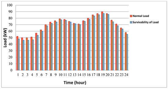 Figure 16 compares normal loading and survivability of loads during different hours a day. As can be seen from Figure 16, a significant proportion of loads in the MG has been supplied, which in turn shows the effectiveness of proposed method to enhance power system resilience after long-time outage.
